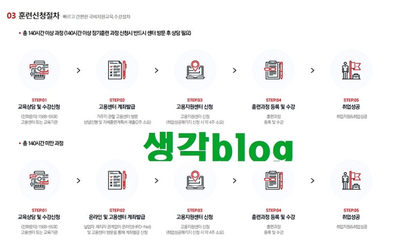 ◆ 신청방법 직업훈련을 희망하고 국민내일학습카드 신청 자격을 갖춘 경우 노원정부 출연 학원이나 고용센터에 전화하거나, 온라인(취업24) 또는 고용센터를 방문하여 신청한다. 귀하의 관할권에서. 당신은 이것을 할 수 있습니다. 이때 주의할 점이 하나 있는데, 자신이 공부하고 싶은 분야 과목의 수업시간이 140시간을 초과하는 경우 반드시 거주지의 취업센터를 방문하여 신청해야 한다는 것이다.