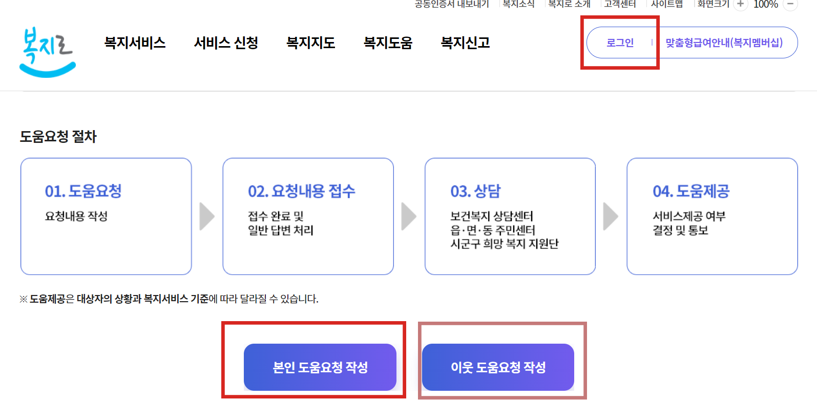 복지로드 사이트에서 제공하는 도움요청 안내는 다음과 같습니다.