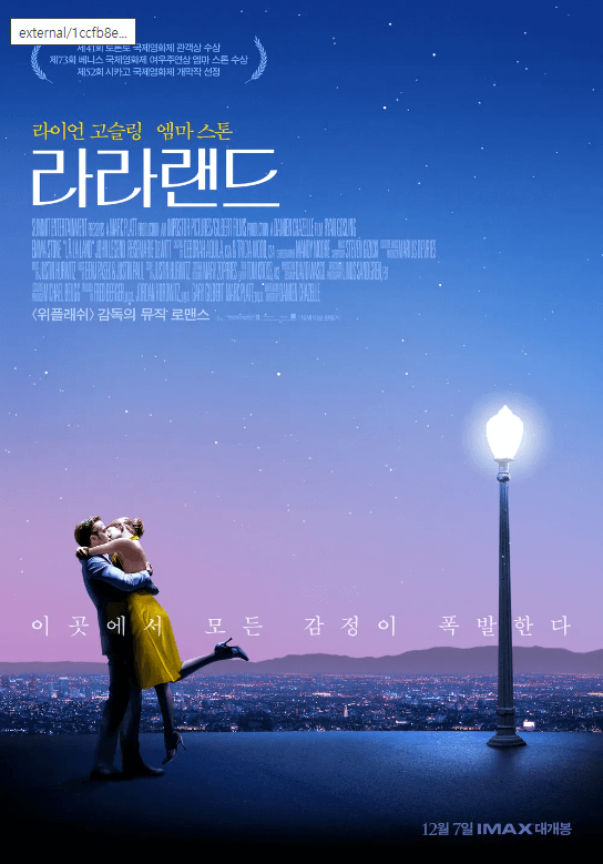 2016년 개봉한 ‘라라랜드’는 국내외에서 많은 인기를 얻었다. 해외에서는 2017년 골든글로브 시상식에서 7개 부문 후보에 올라 7관왕을 차지했다. 또한 아카데미 시상식에서 14개 부문에 노미네이트됐으며 감독상, 남우주연상, 작곡상 등 6개 부문에서 수상했다. 이처럼 ‘라라랜드’는 흥행뿐만 아니라 시상식에서도 큰 성공을 거둔 작품으로 국제적으로 평가받고 있다. 국내 370만 관객의 사랑을 받았다. 2016년 대한민국 대표 영화제에서 ‘대영상’을 수상하기도 했다. 뮤지컬 영화라는 장르에 새로운 변화를 가져왔고, 뮤지컬을 현대적으로 재해석했다. 이를 통해 대중은 영화를 보는 내내 로맨틱한 세계에 몰입하며 다양한 감정과 메시지를 전달받았다. 엠마 스톤과 라이언 고슬링의 연기와 케미가 굉장히 자연스럽고, 두 배우의 섬세한 연기력이 영화의 영화적 완성도를 더해준다.