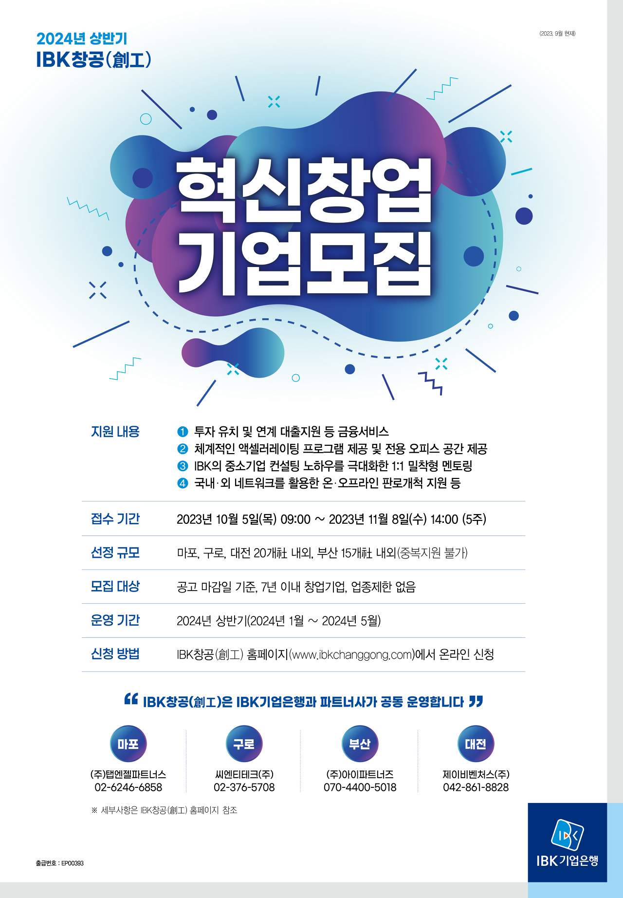 문의사항은 통영창업지원센터 055-650-5295로 문의해주시기 바랍니다. 신청기간 : ~8.16.(금) 신청대상 : – 창업지원센터 입주지원자 – 창업경력 3년 이하 스타트업 기업 – 예비창업자 지원내용 : – 전문교육 프로그램 운영 – 사업계획서 작성, 창업자 특강 제출서류 : 신청서, 개인정보이용동의서 신청방법 : 접수센터 방문 또는 온라인 신청 문의 : 통영창업지원센터 055-650-5295